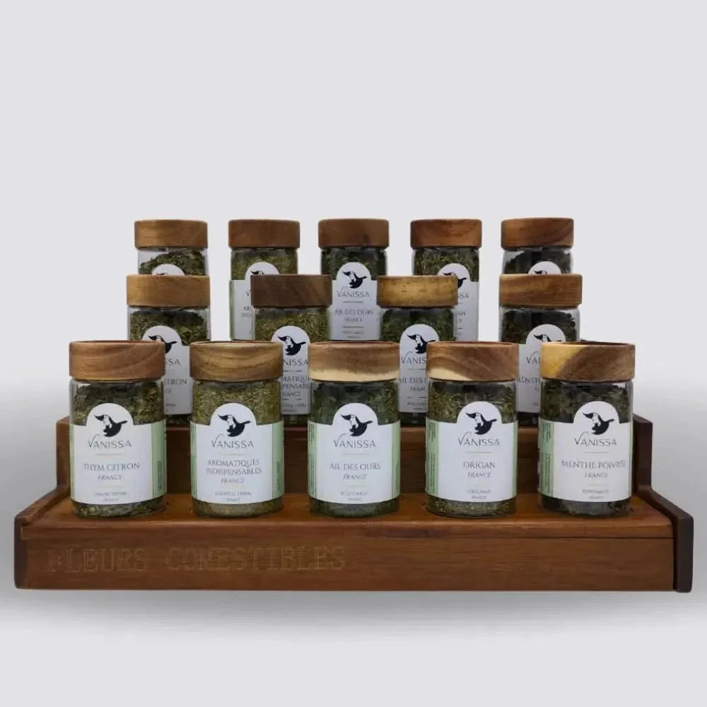 Ces herbes apportent une profondeur et une authenticité remarquables à vos créations culinaires, des plats français classiques aux interprétations modernes. La collection est livrée avec un présentoir en bois et un sac fourre-tout professionnel, conçu pour allier fonctionnalité et présentation. Parfait pour les cuisines professionnelles souhaitant sublimer leurs plats avec les saveurs françaises authentiques.
